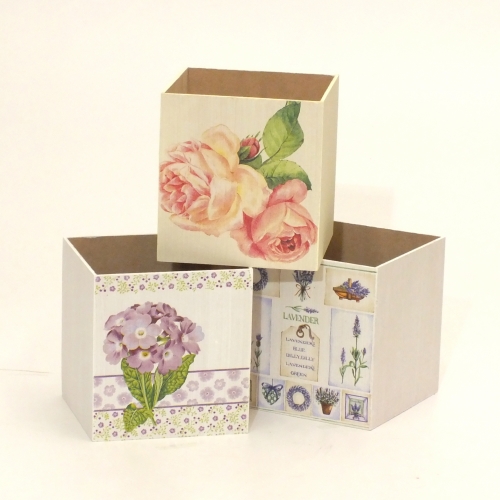 Cachepot Madeira Decoupage 15cmx15cmx14cm Sortido