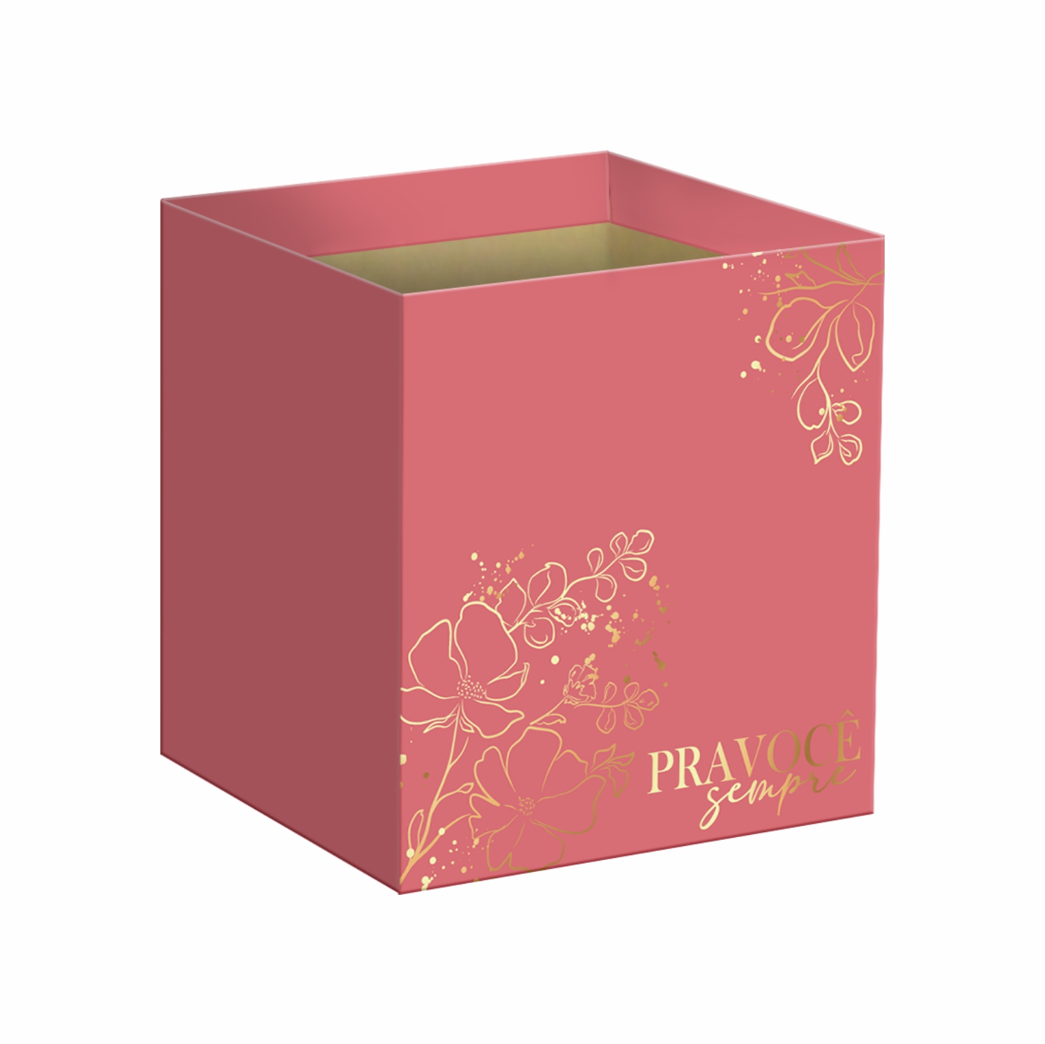 Cachepot Quadrado Essenza c/ Hot Stamping 14,5cmx14,5cmx15,5cm 10pc Blush/Ouro