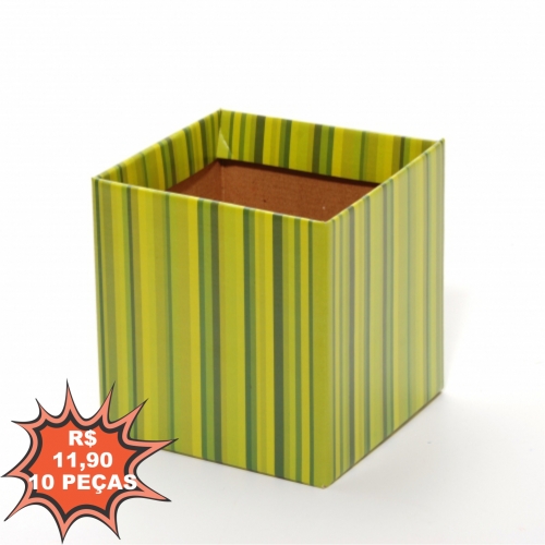 Cachepot Quadrado Listrado 15,3cmx15,3cmx15,3cm 10pc Verde