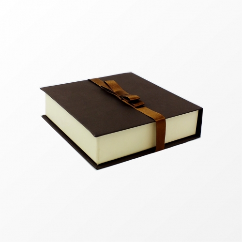 Caixa Kraft Quadrada c/ Fita 16cmx16cmx4cm Marrom/Marfim