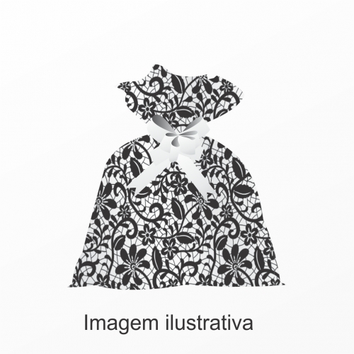 Saco Poli Metalizado Renda/Romance 25cmx35cm 50pc Preto/Prata