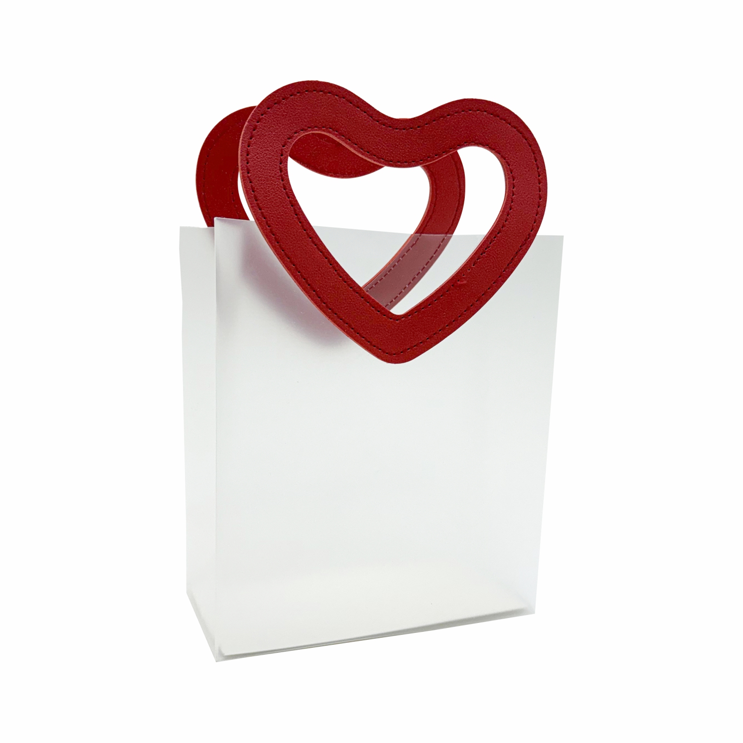 Sacola PVC Incolor C/Alça De Coração 18,5cmx16cmx8cm Incolor/Vermelho